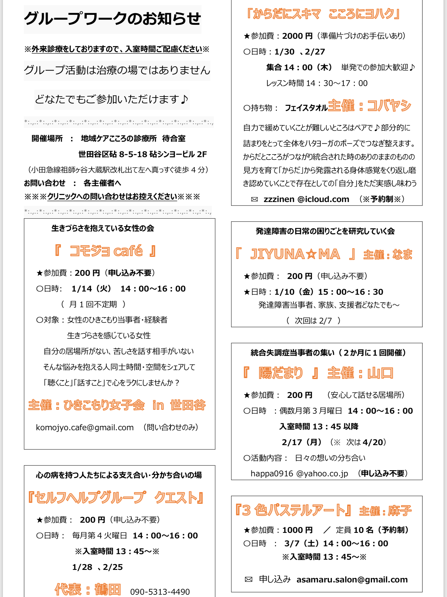 - 2/18(月)統合失調症当事者会「陽だまり」の告知
