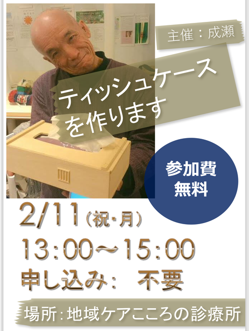 - 2/11(月・祝)無料木工教室の告知